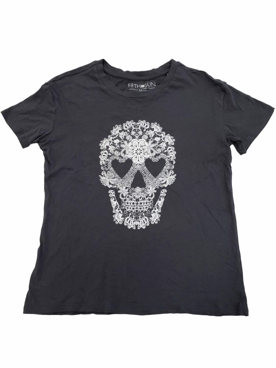 - Womens Black & White Sugar Skull Short Sleeve Halloween Tee T-Shirt Top