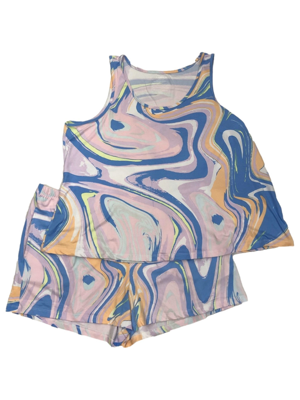 - Womens Blue Orange & Purple Tie Dye Pajamas Shorts Tank Top Sleep Set