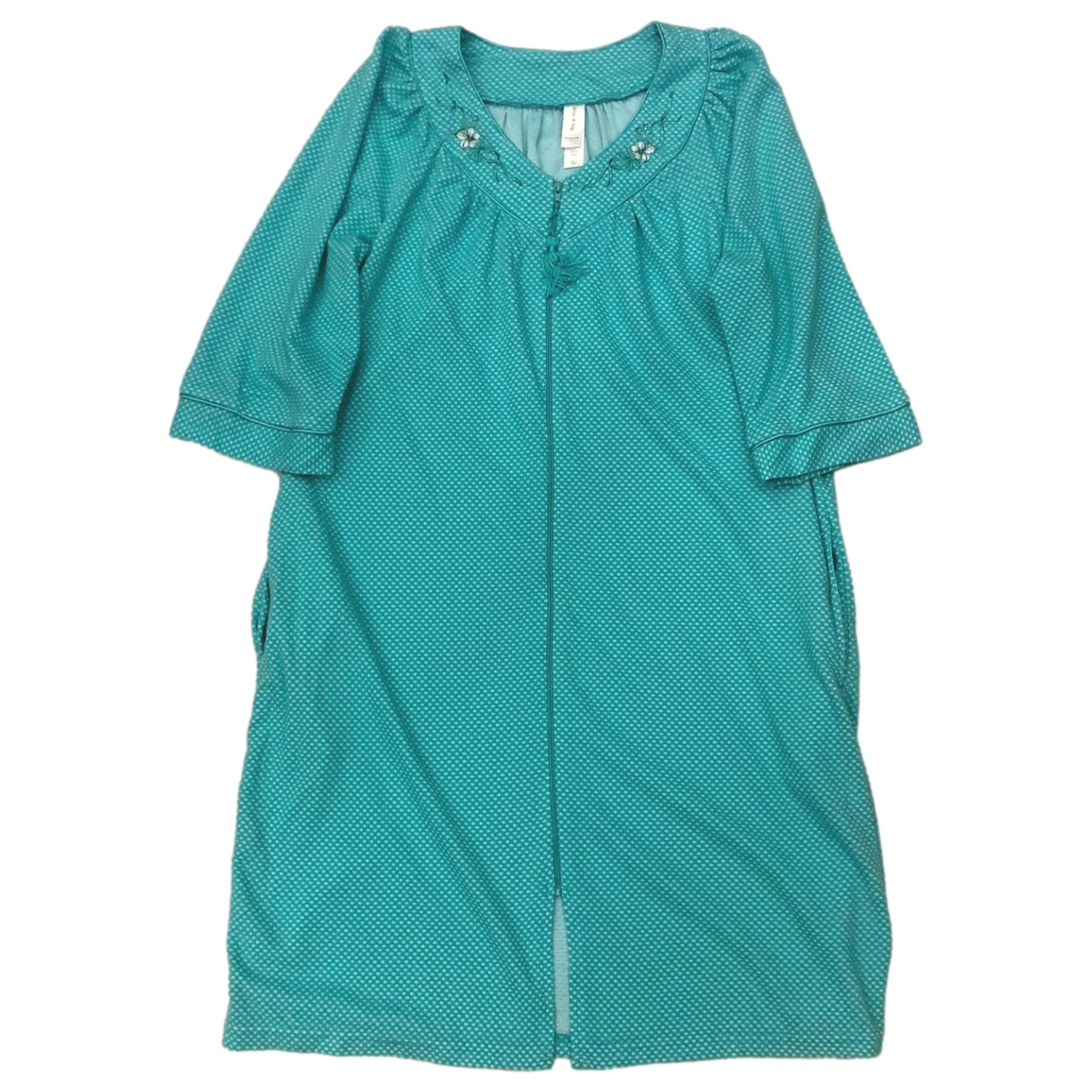 This pretty blue green polka dot zip front duster style breakfast nightgown is so comfy and has 2 side pockets.