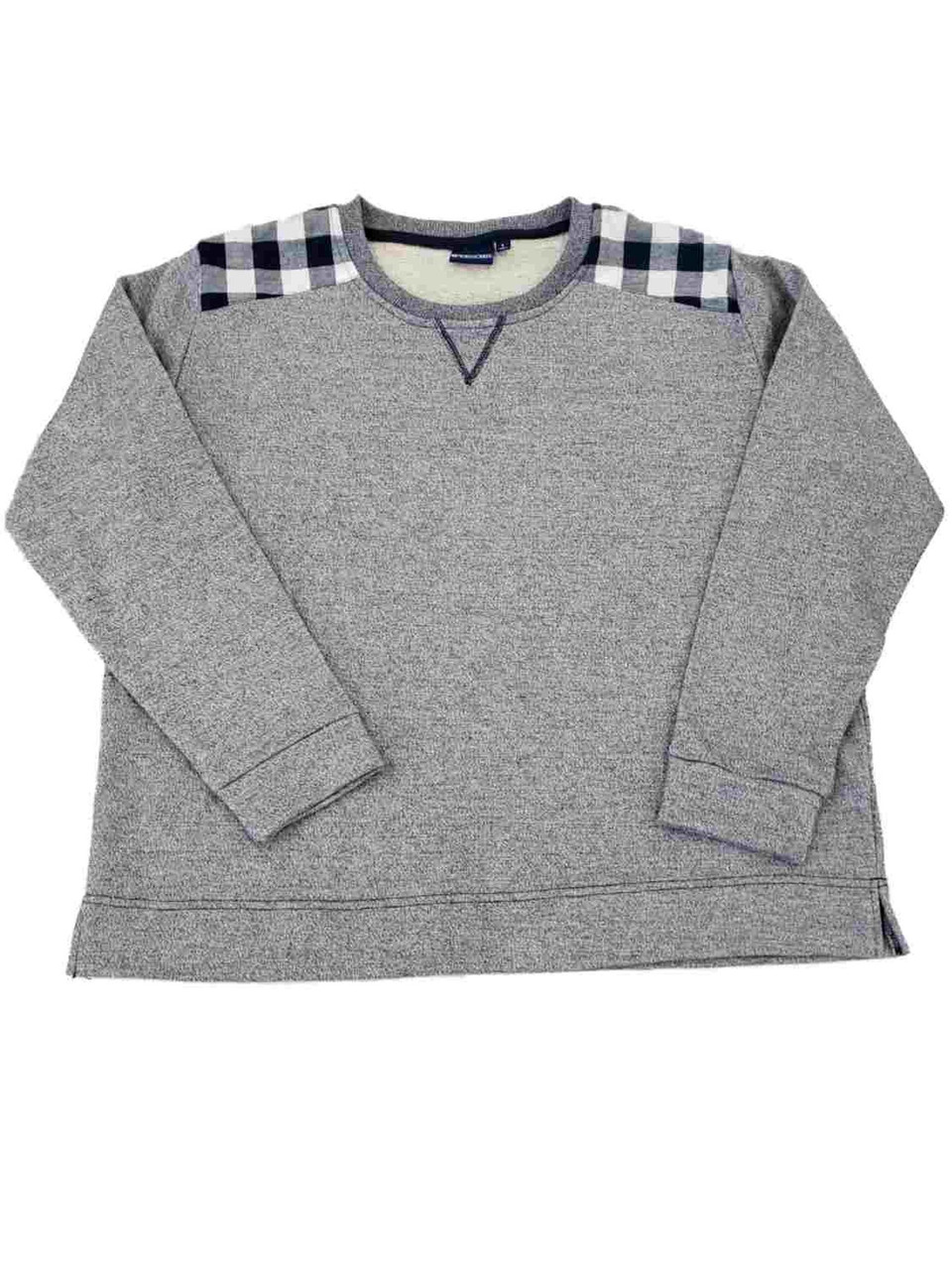 - Womens Blue & White Checkered Trim Long Sleeve Sweatshirt Shirt Top L