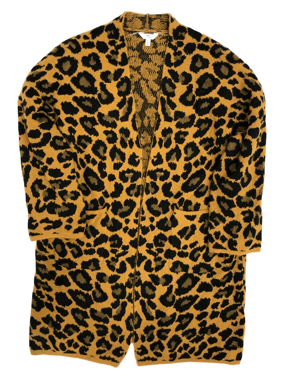 - Womens Brown & Black Leopard Print Sweater Long Sweater Jacket Cardigan