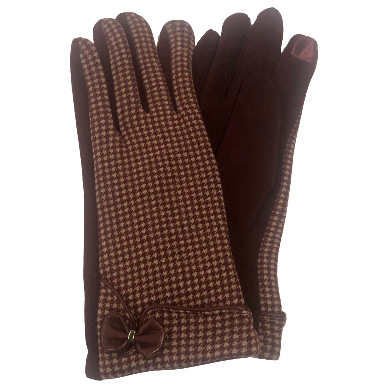 - Womens Burgundy Houndstooth Stretch Fit Texting & Tech Touchscreen Gloves