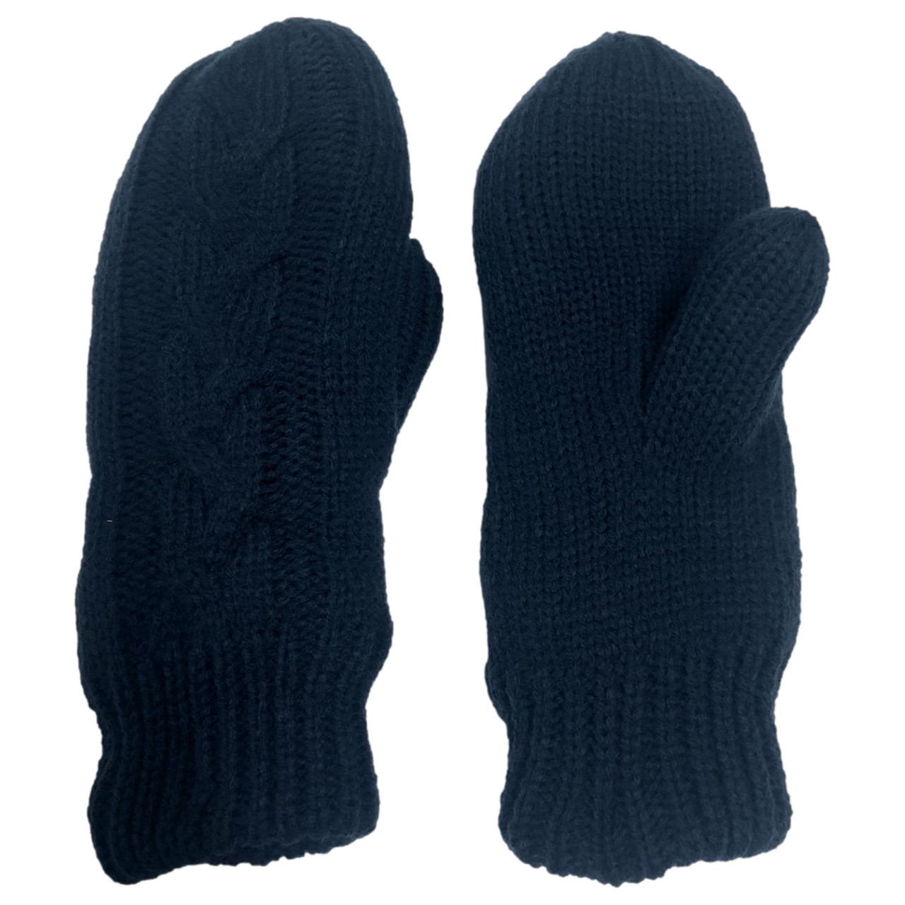 - Womens Cable Knit Mittens Navy Blue Sherpa Lined