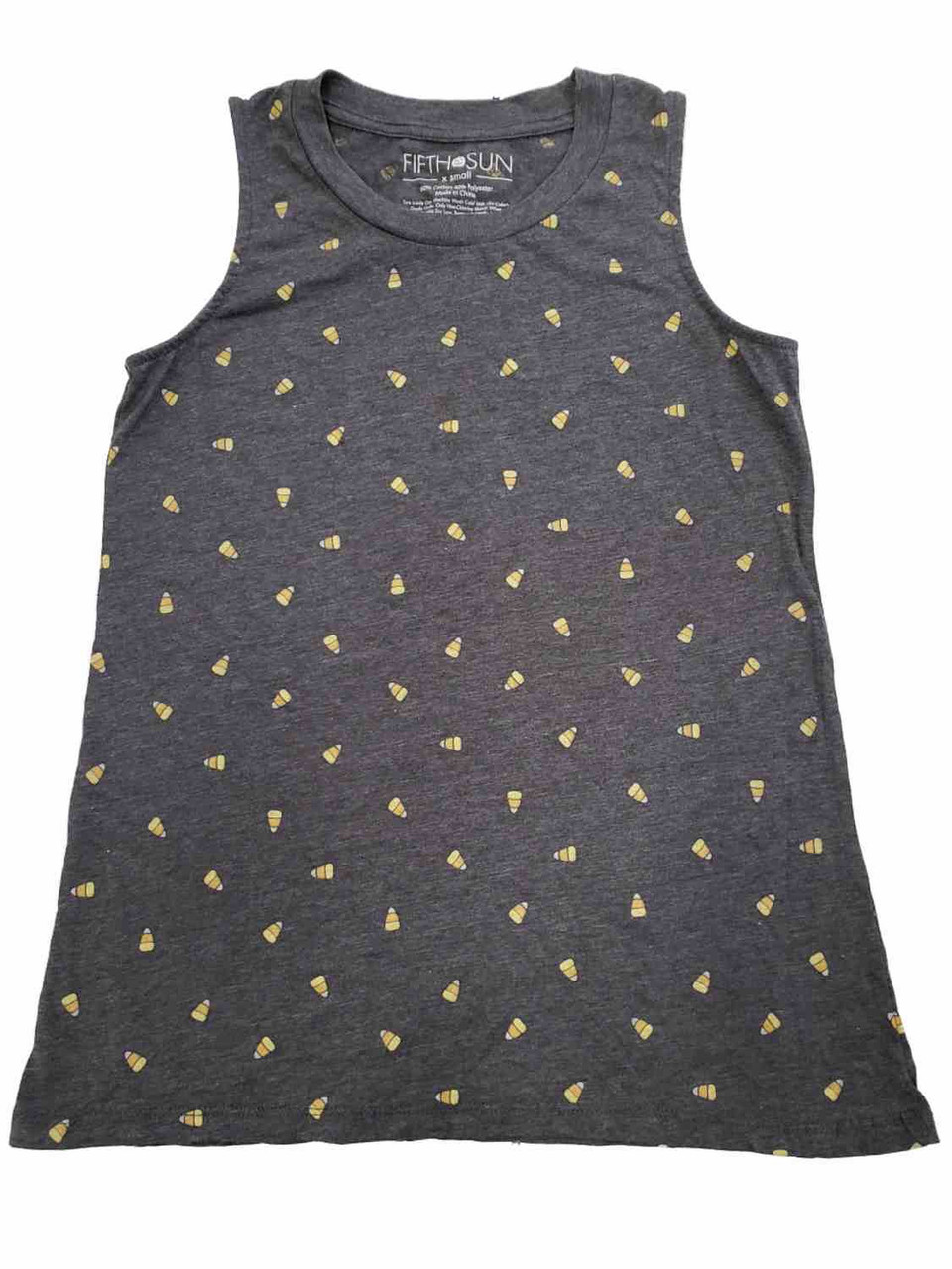 - Womens Charcoal Grey Candy Corn Print Sleeveless Halloween Tee T-Shirt Top