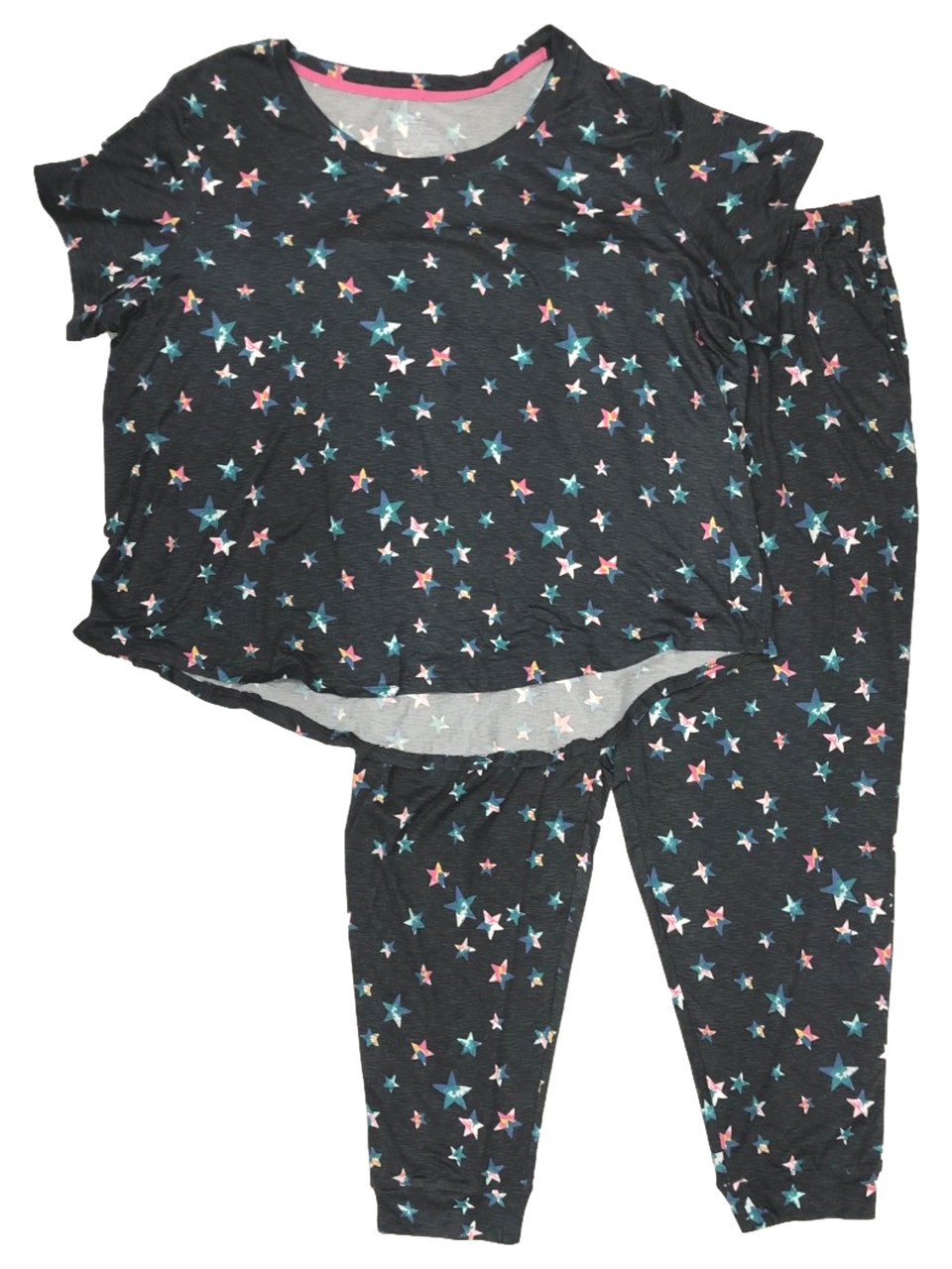 - Womens Colorful Gray Star Print Knit Pajamas Sleep Set Tee & Joggers 2X