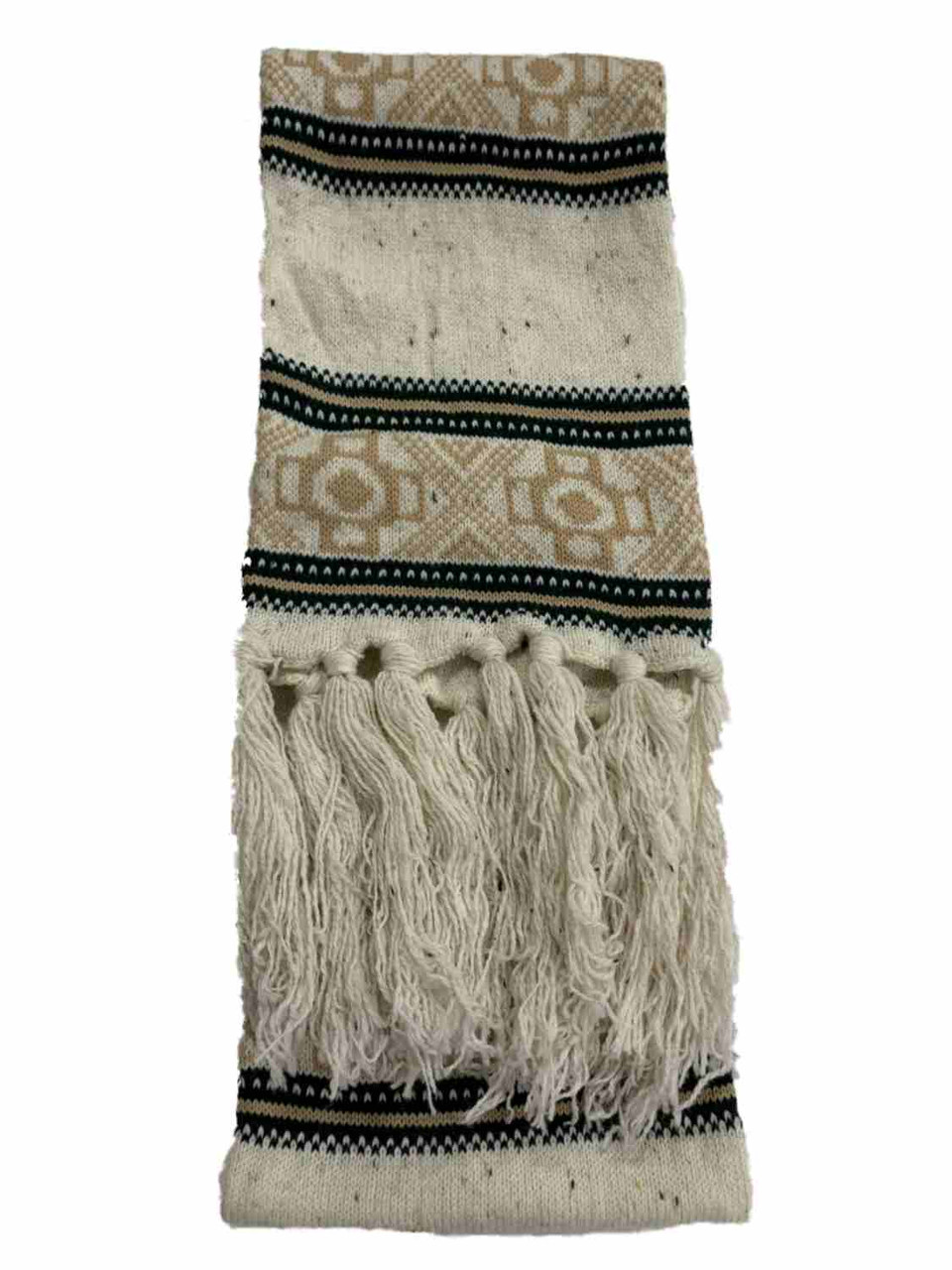 - Womens Cream Green & Tan Speckle Fringe Scarf