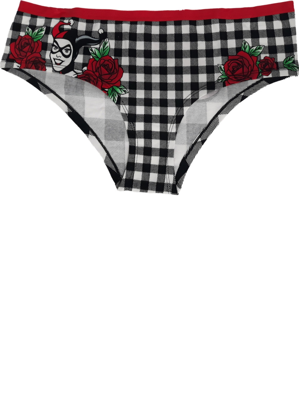 - Womens DC Black White Plaid Red Rose Harley Quinn Brief Underwear Panties