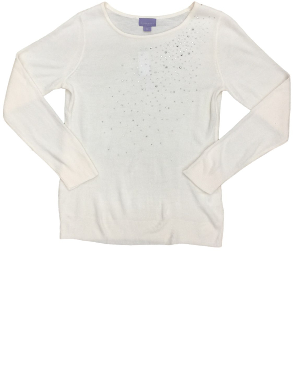 - Womens Eggshell White Knit Bedazzled Sweater Casual Dress Pullover