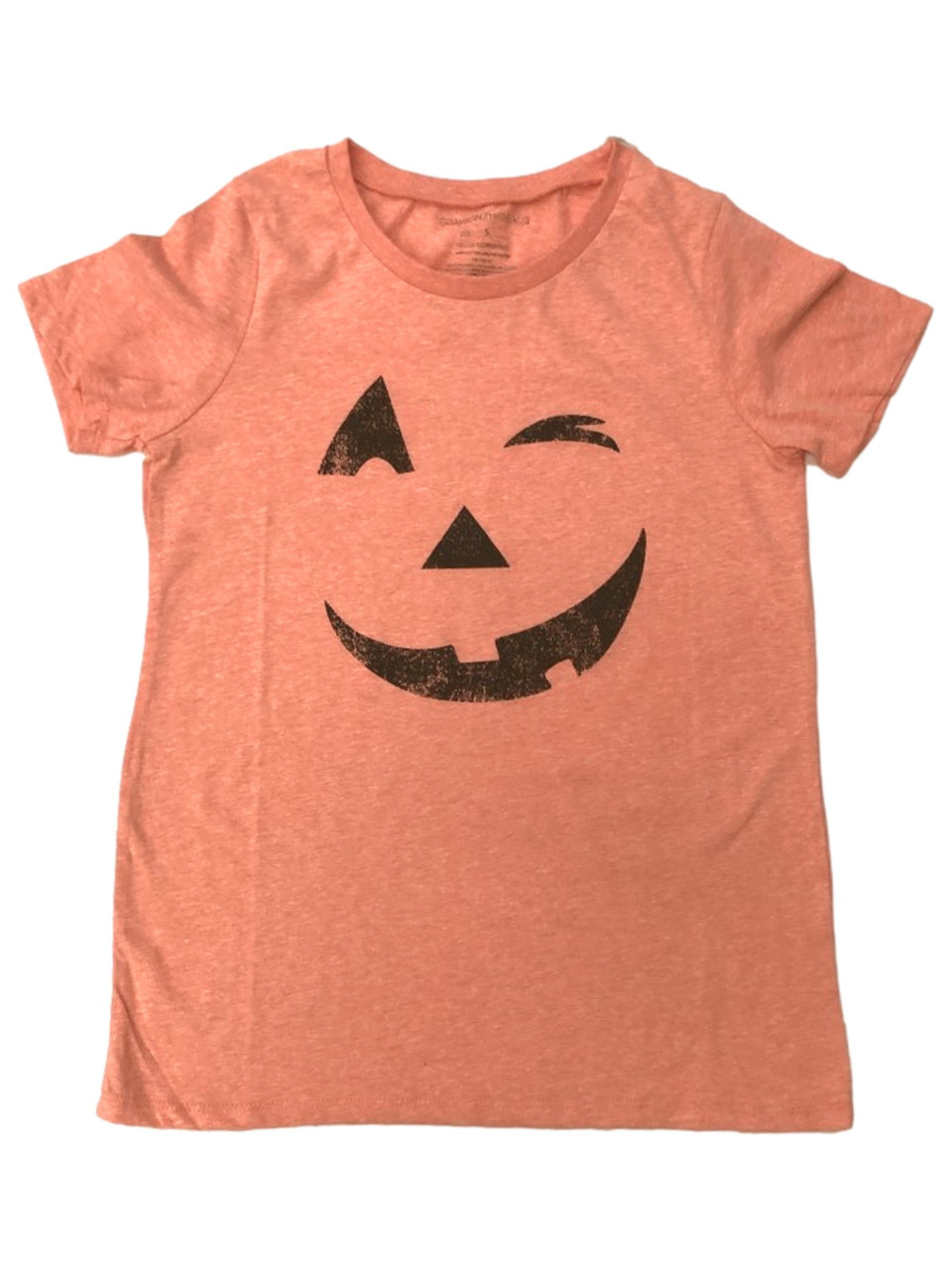 You will be ready for those cool fall nights in this adorable faded orange winking pumpkin face Halloween tee. It will look perfect with your favorite pair of jeans!