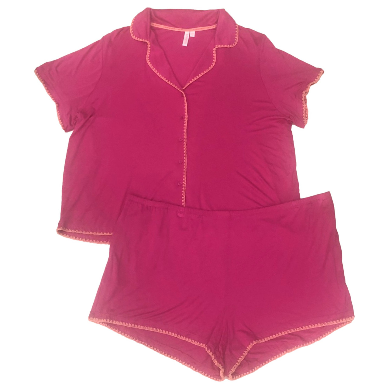 - Womens Fuchsia Hot PinkPajamas Top & Shorts Sleep Set 3X