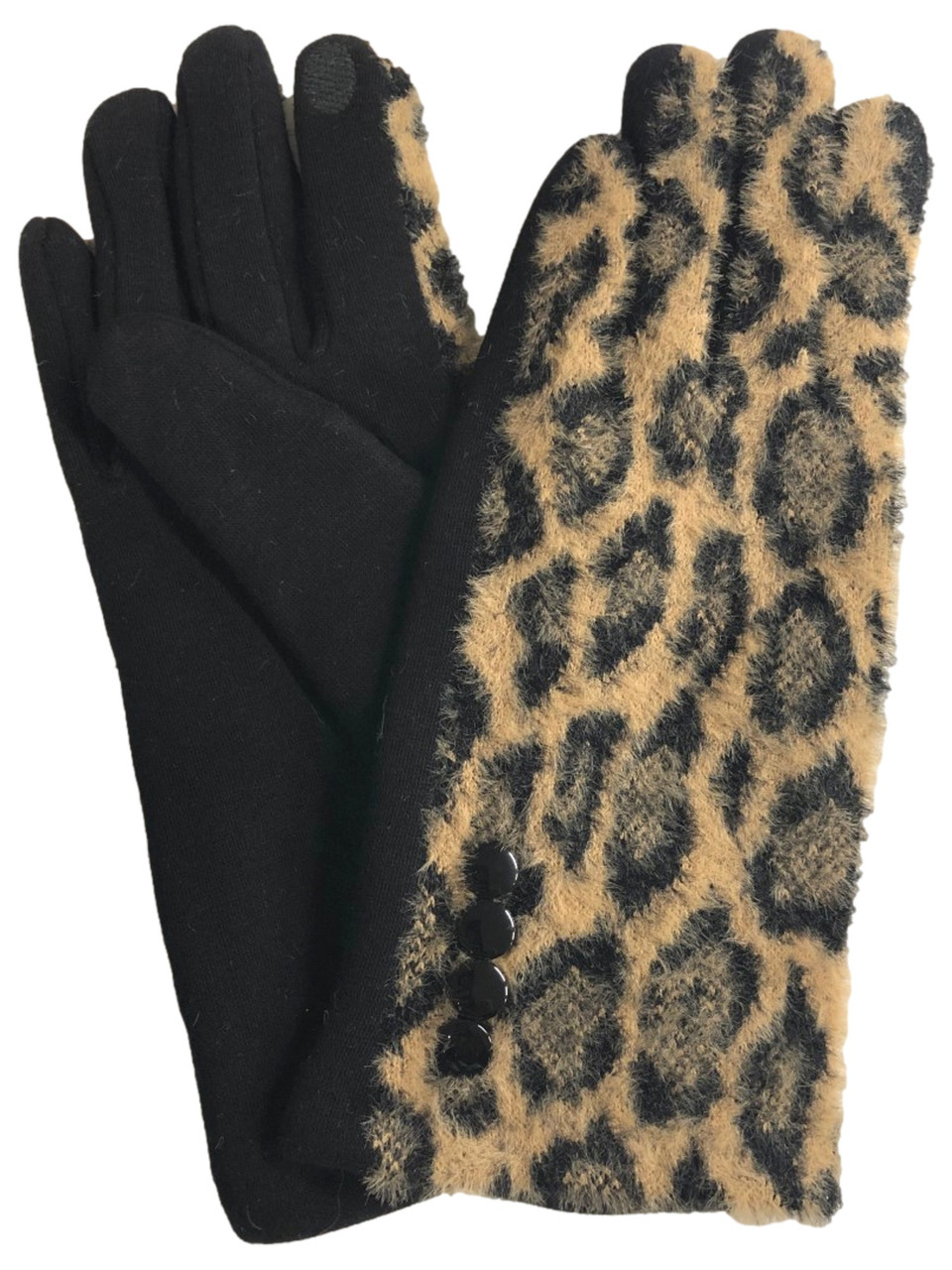 - Womens Fuzzy Brown Leopard Print Stretch Fit Texting & Tech Touchscreen Gloves