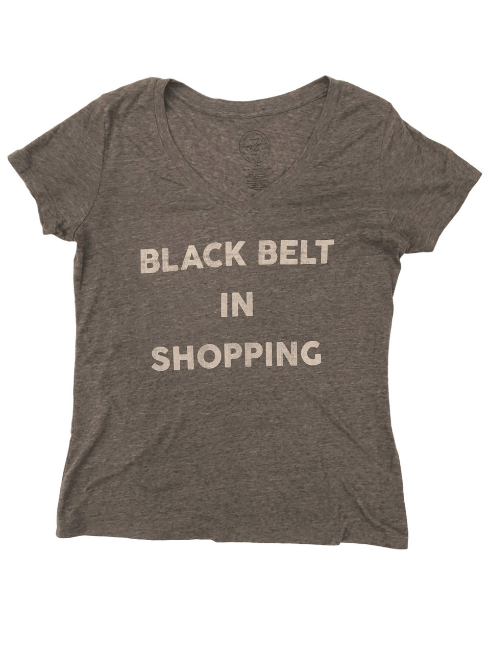 You will be ready to hit the sales in this fun gray "Black belt in shopping" t-shirt!