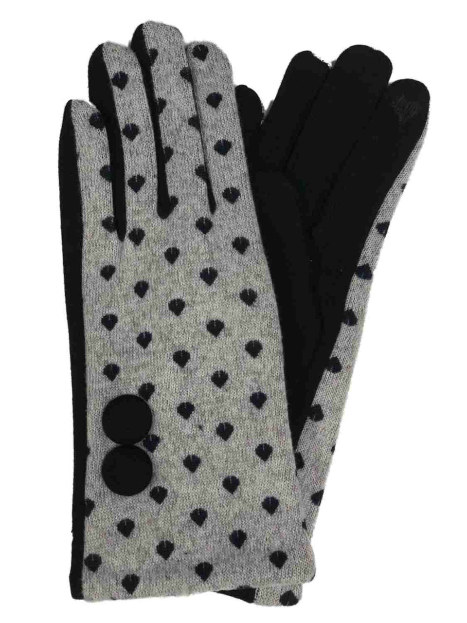 - Womens Gray & Black Hearts Stretch Fit Texting & Tech Touchscreen Gloves