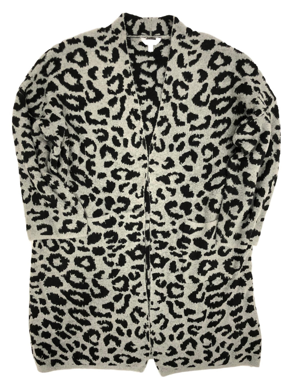 You will love the cozy feel of this pretty gray & black leopard print sweater jacket!