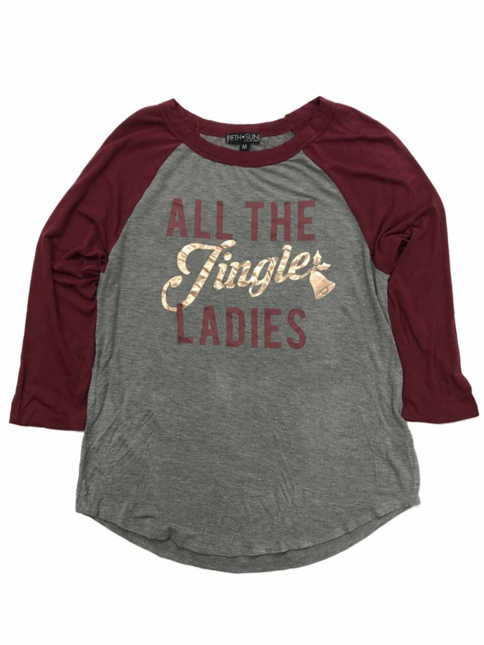 You will be ready for the holidays in this fun 3/4 sleeve "All the jingle ladies" Christmas tee shirt!
