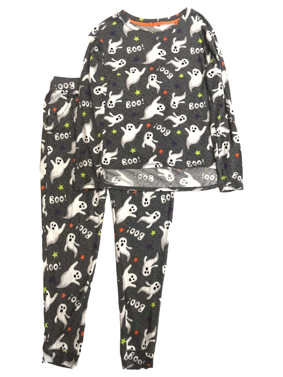 - Womens Gray Ghost Halloween Pajamas Long Sleeve Top & Pants Sleep Set