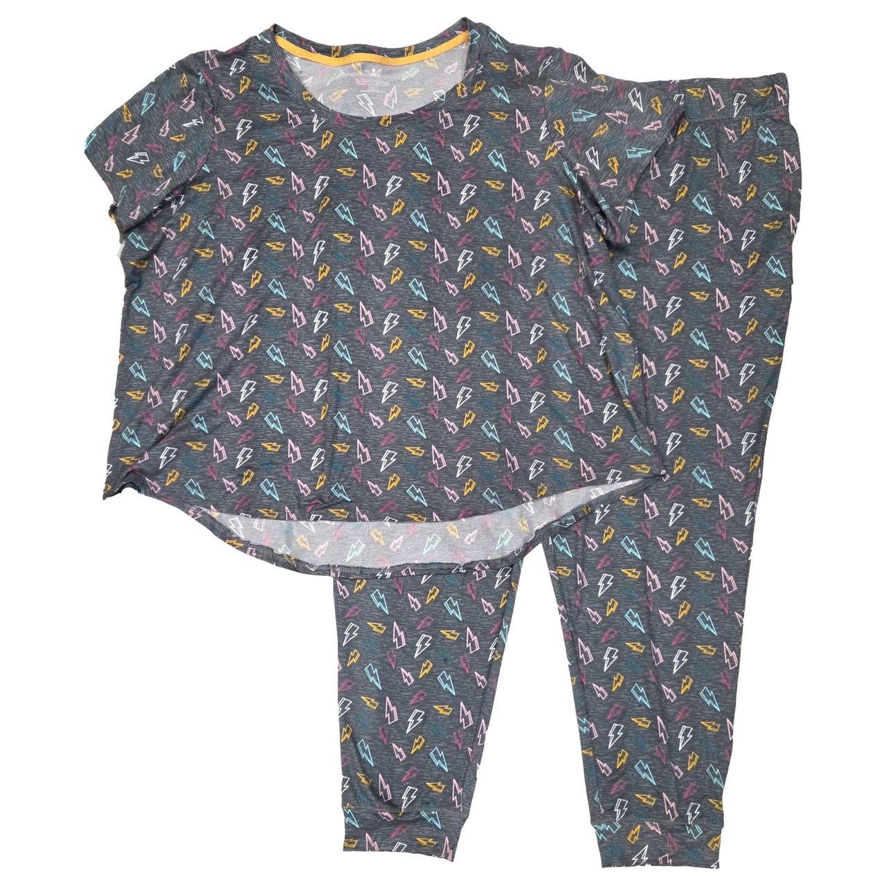 - Womens Gray Lightning Bolt Lightweight Short Sleeve Top & Pajama Pants Set 3X