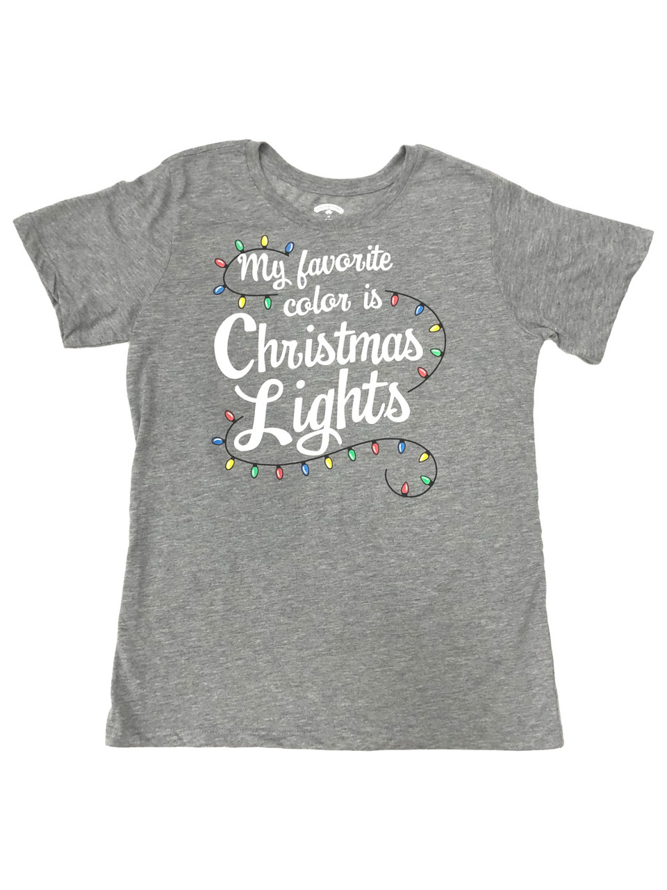 - Womens Gray My Favorite Color Christmas Lights Holiday T-Shirt Tee Shirt