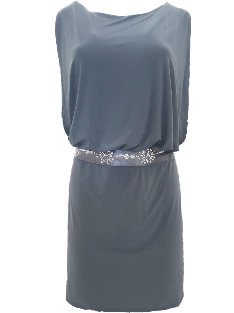 - Womens Gray Rhinestone Accent Tanktop Cocktail Evening Dress