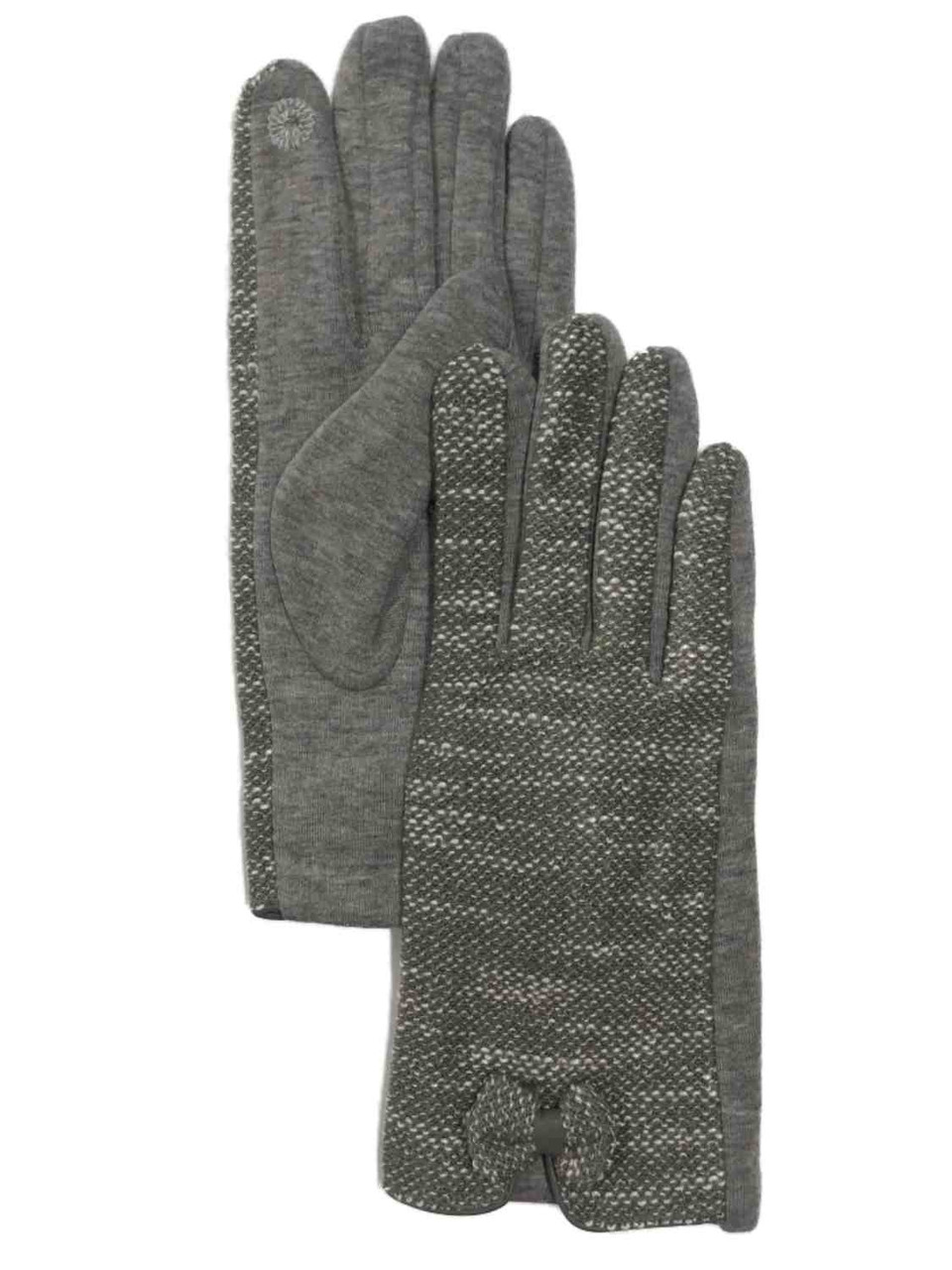 - Womens Gray Tweed Bow Stretch Fit Texting & Tech Touchscreen Gloves