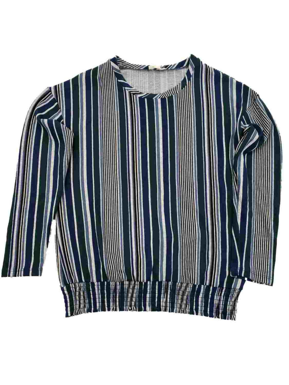 - Womens Green and Navy Blue Striped Elastic Hem Long Sleeve Shirt T-Shirt Top