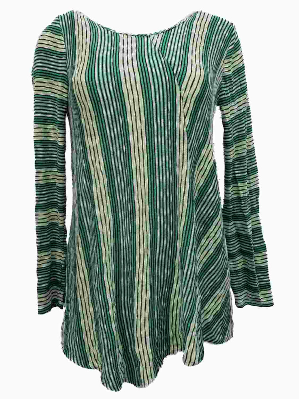 - Womens Green Black White Striped Long Sleeve Dressy Sweater