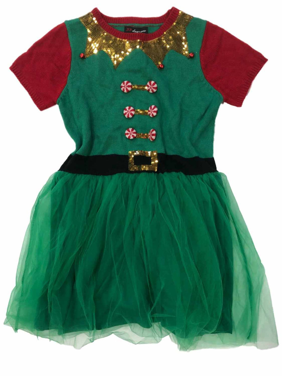 You will be the star of the Christmas party in this pretty green tulle & sequin elf themed sweater dress!