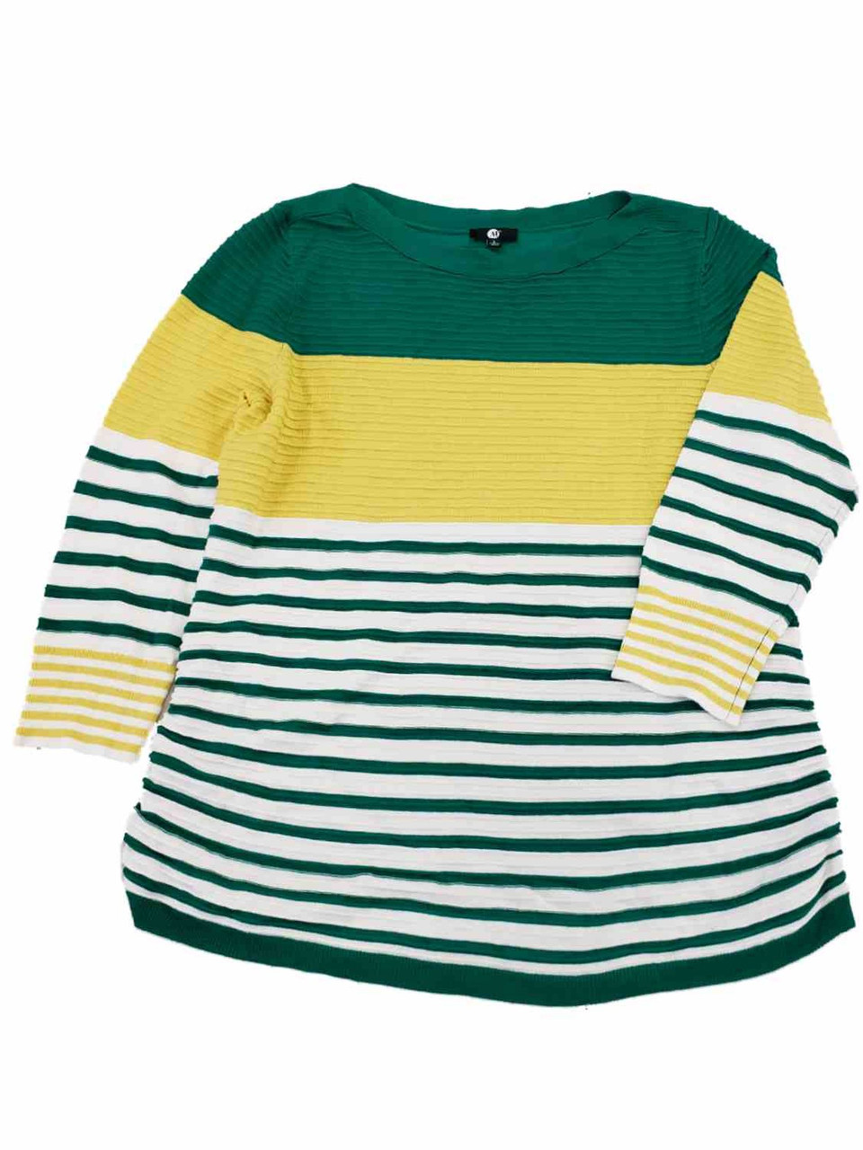 - Womens Green Yellow White Stripe Ribbed Dressy Stretchy Sweater Top Shirt
