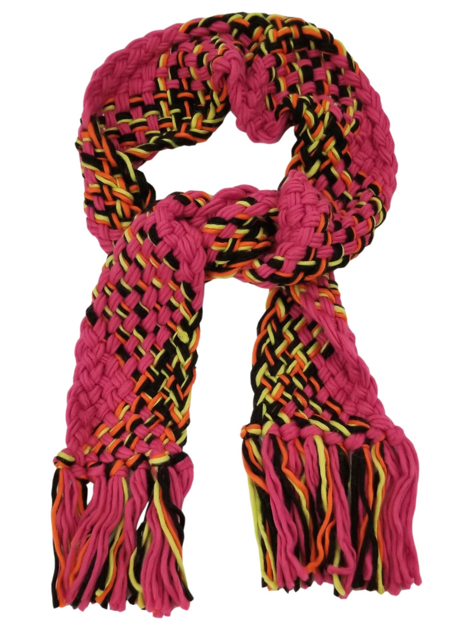 - Womens Hot Pink Neon Yellow Black Multi-Color Crochet Chunky Knit Scarf Tassels