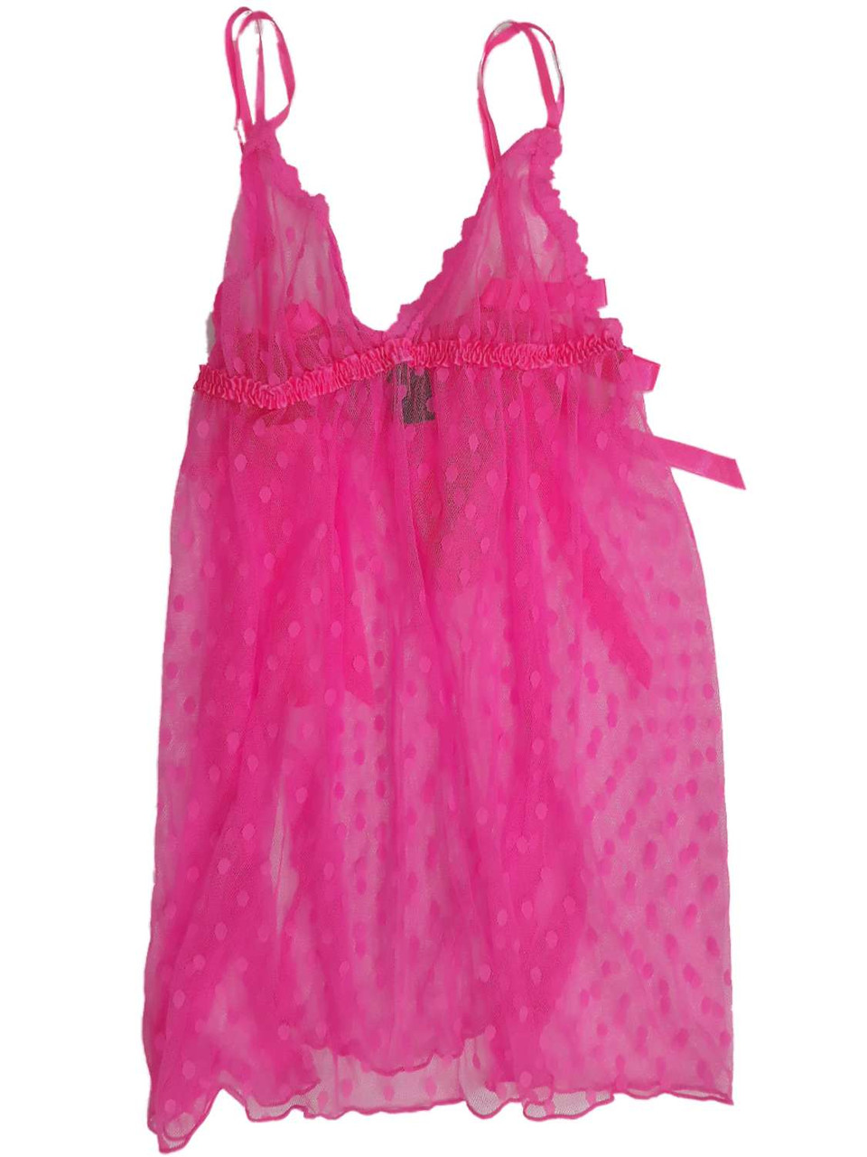 - Womens Hot Pink Polka Dot See Through Chemise Nightie Nightgown Lingerie Teddy