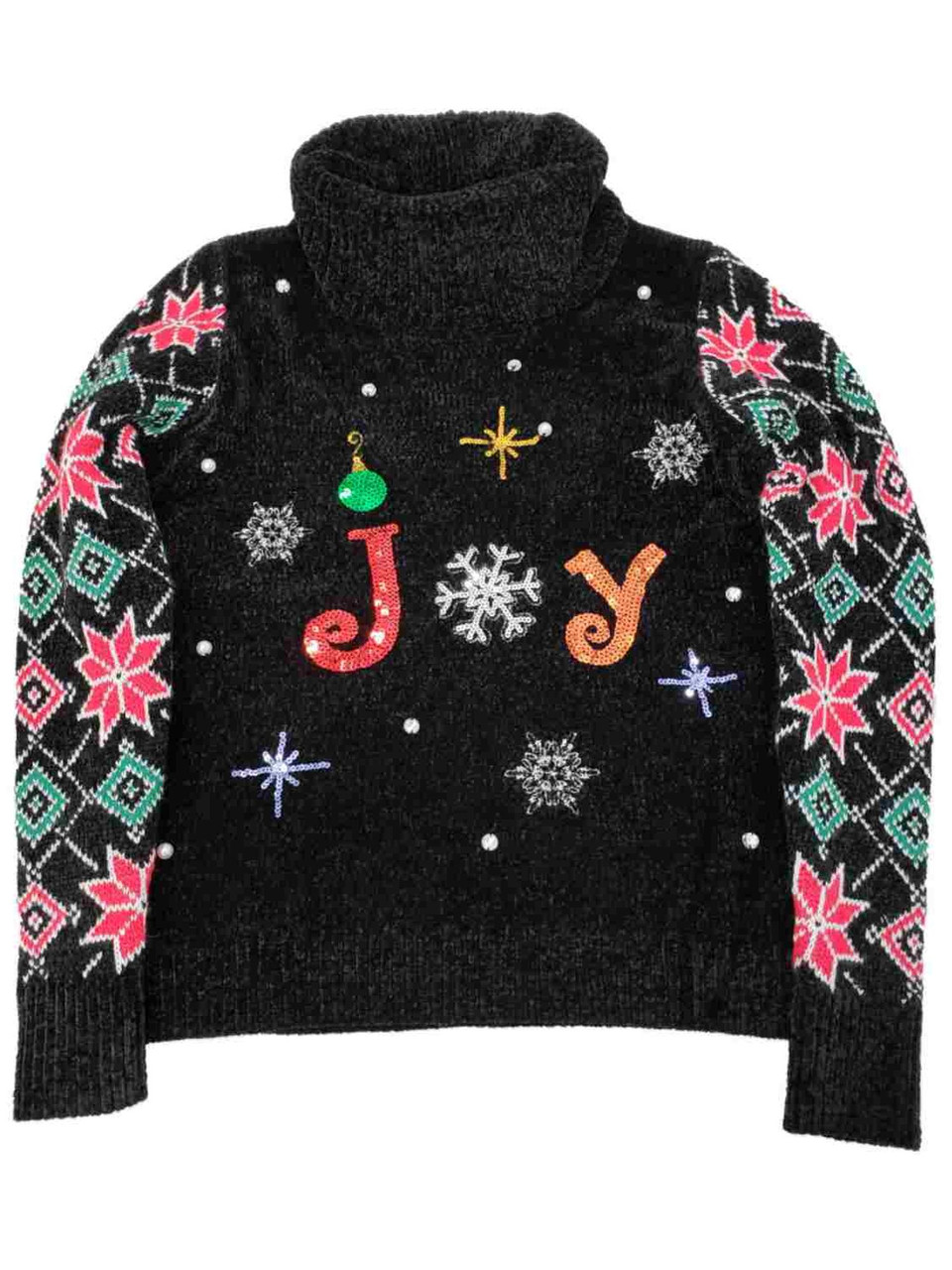 - Womens Joy Black Sequin Knit Cowl Neck Christmas Holiday Winter Sweater Top