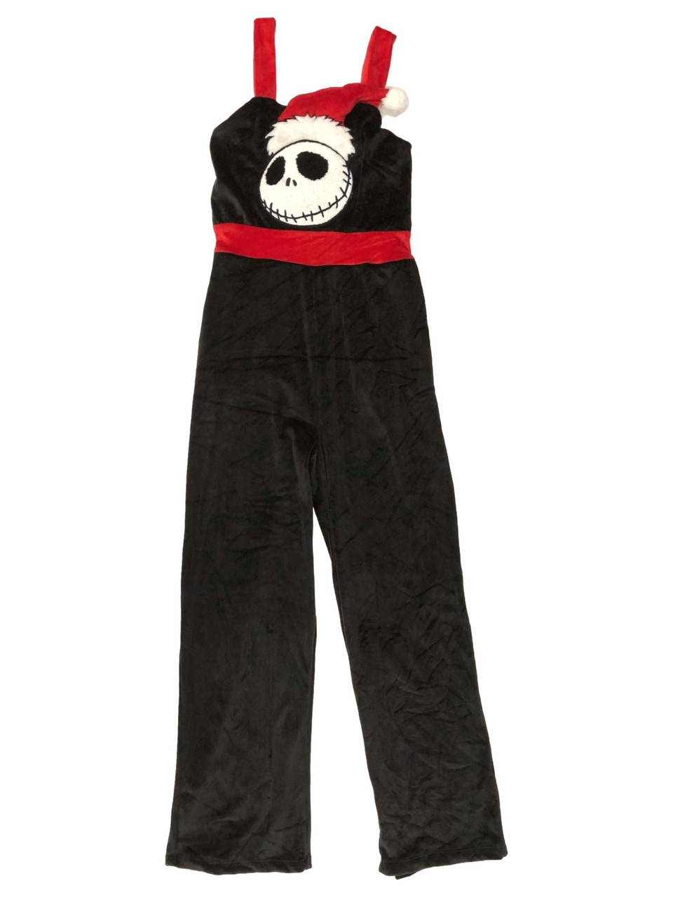 You will be the star of the holiday parties in this fun velvety black Nightmare Before Christmas "Jack Skellington" themed holiday overalls set!