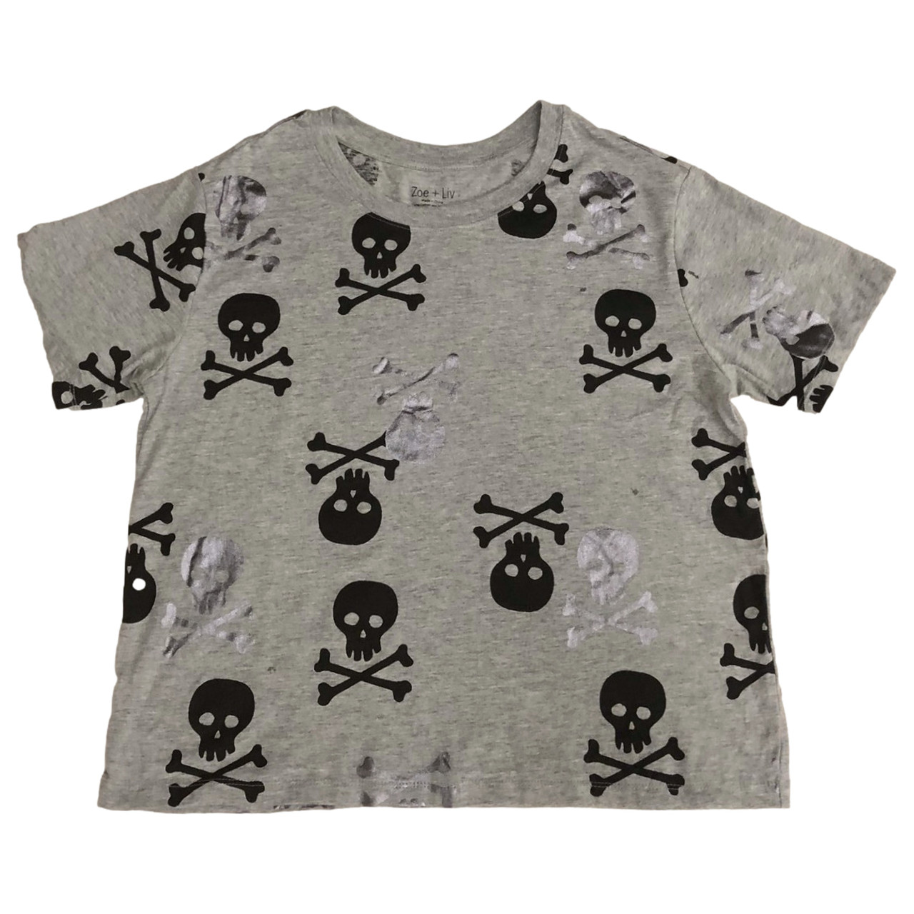 You will love wearing this fun gray, black, & silver skull themed Halloween t-shirt with your favorite pair of pants or shorts!