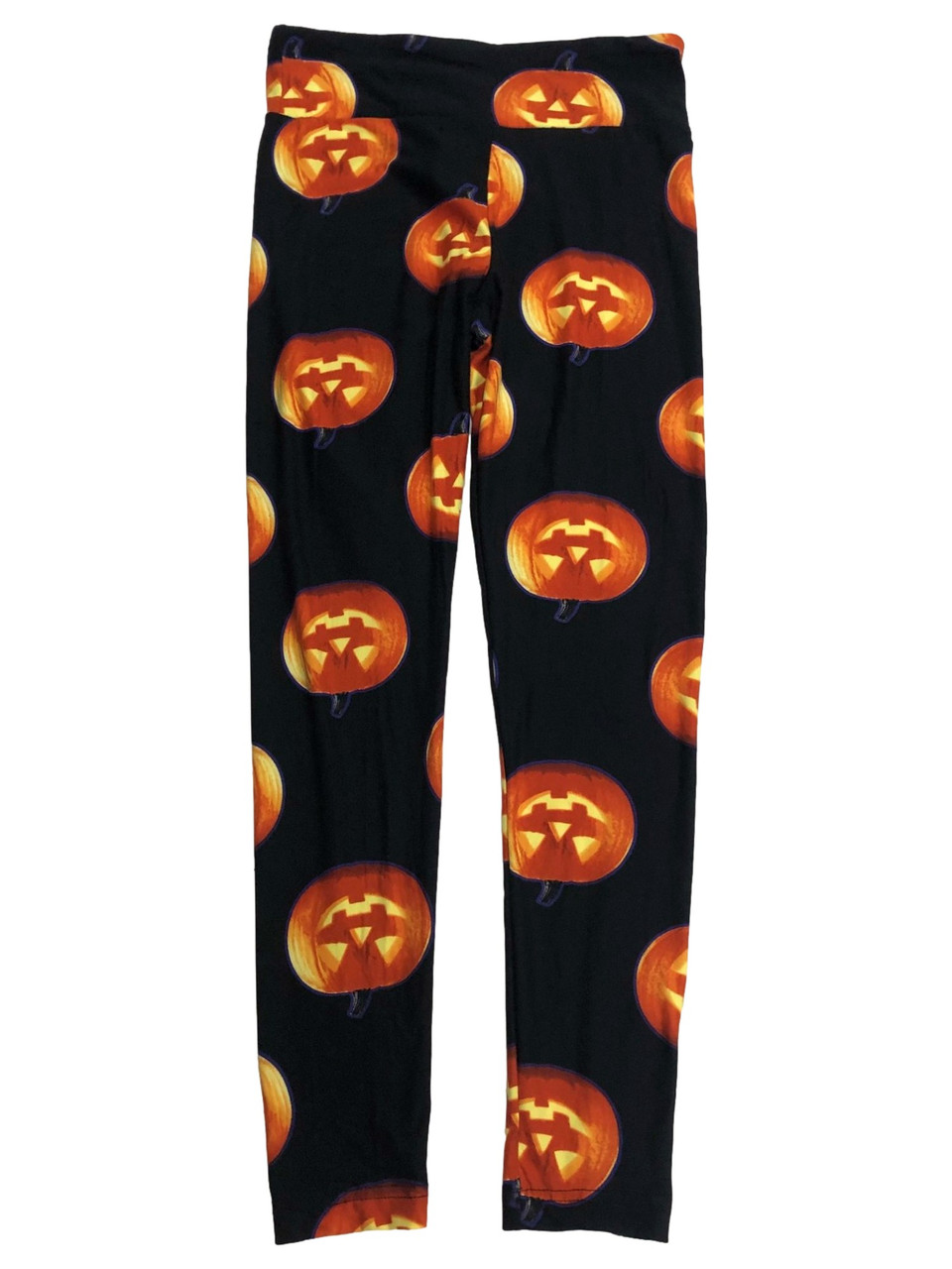 You will be ready for Halloween in these fun silky black & orange pumpkin themed high rise leggings!