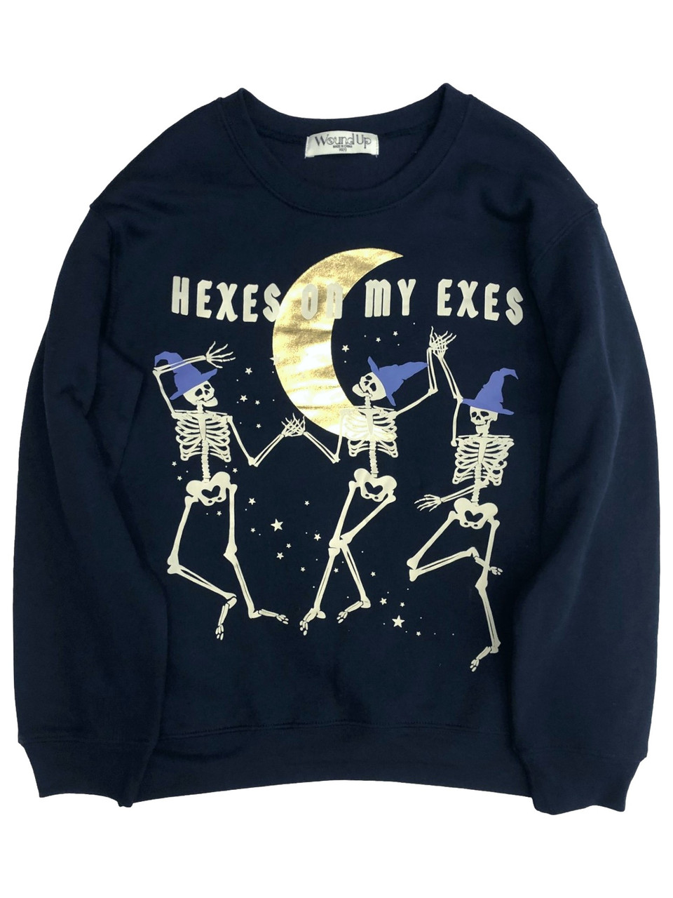 - Womens (Jrs) Skeleton Hexes on My Exes Halloween Sweat Shirt Sweatshirt