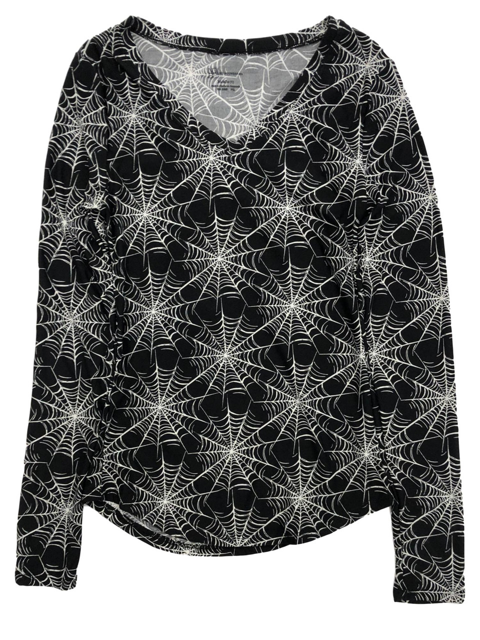 - Womens (Juniors) Black & White Spider Web Long Sleeve Halloween Shirt Top