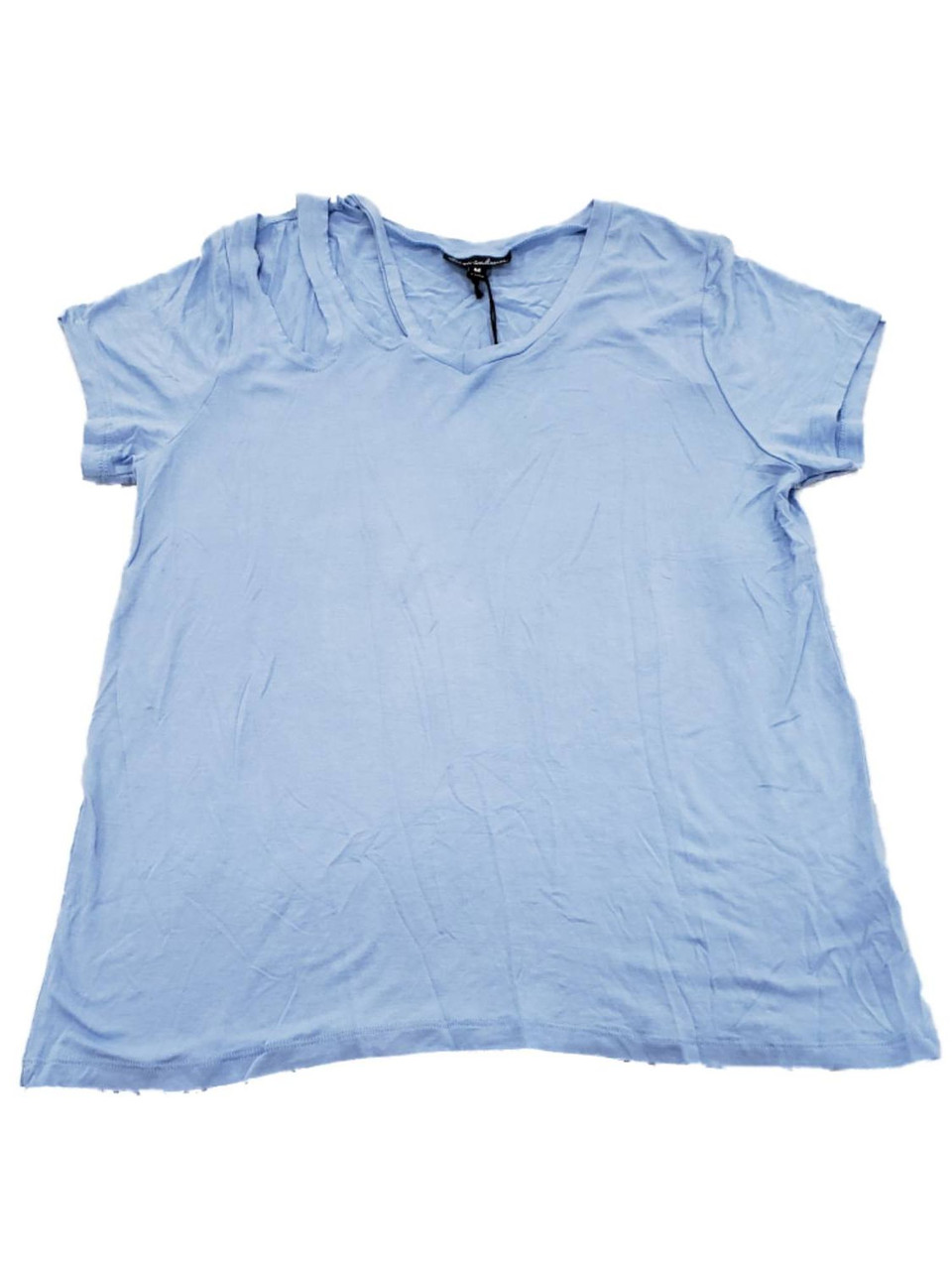 - Womens Light Blue Torn Look Neckline Short Sleeve T-Shirt Tee Shirt Top M