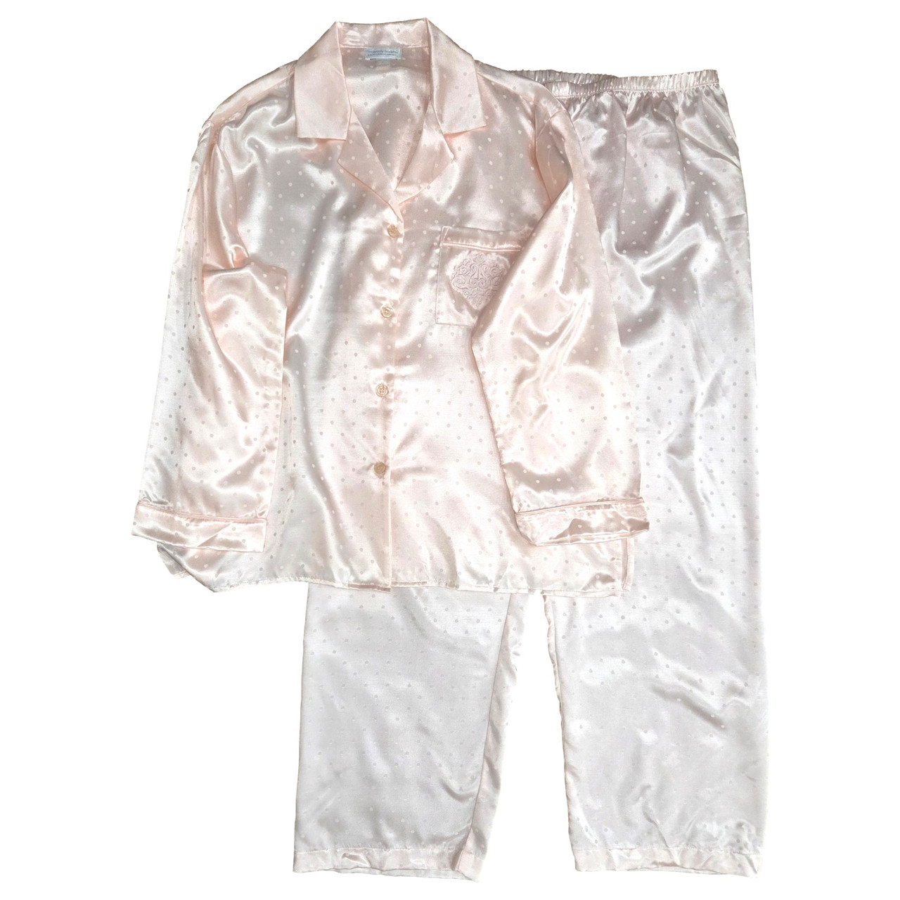 Womens Light Pink Polka Dot Silky Feel Pajama Top & Pants Sleep Set Size Large
