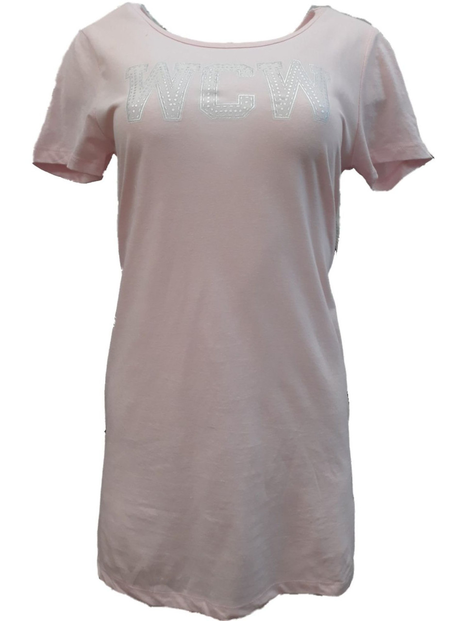 - Womens Light Pink WCW Silver Accented Nightgown Knit Mid-Length Sleep Shirt