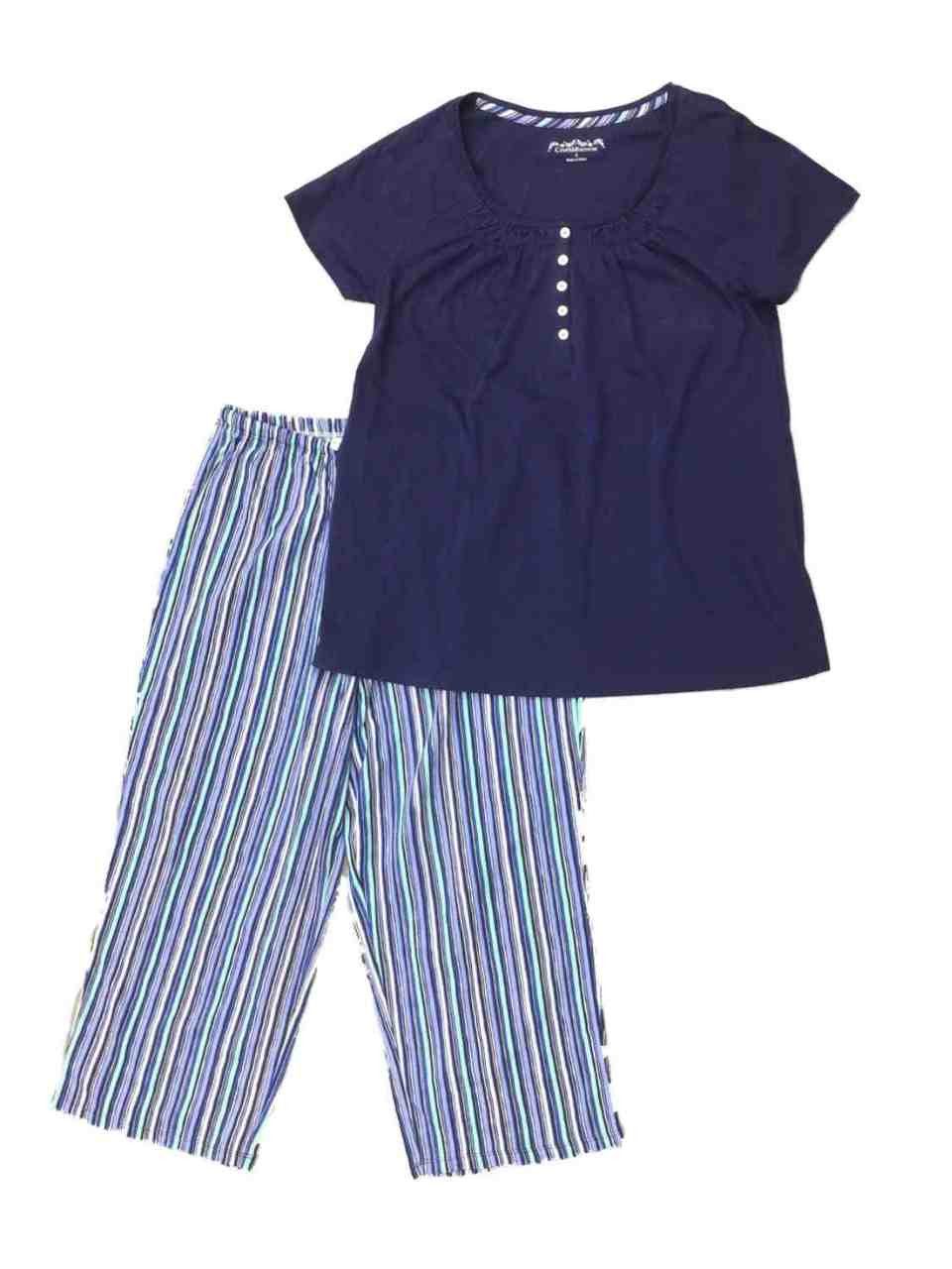 - Womens Lightweight Blue Stripes Knit Pajamas Short Sleeve Sleep Set