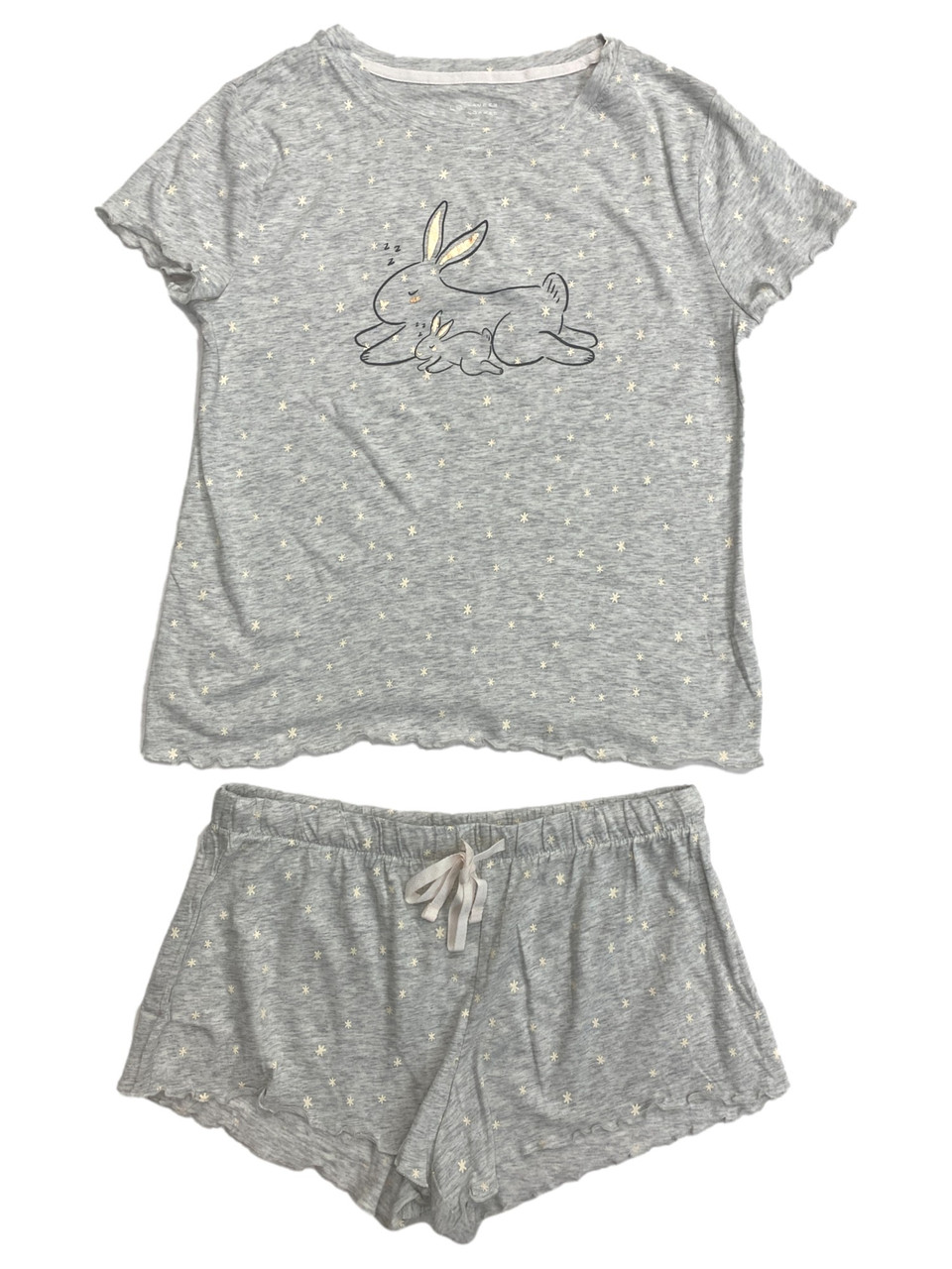 - Womens Lightweight Gray Bunny Rabbit Pajamas Shorts & Tee Shirt Sleep Set