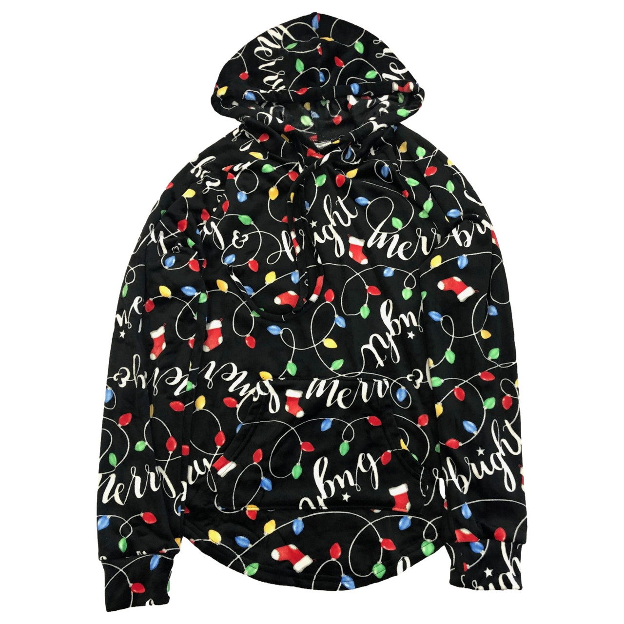 - Womens Lightweight Velour Christmas Lights Holiday Hoodie Sweatshirt