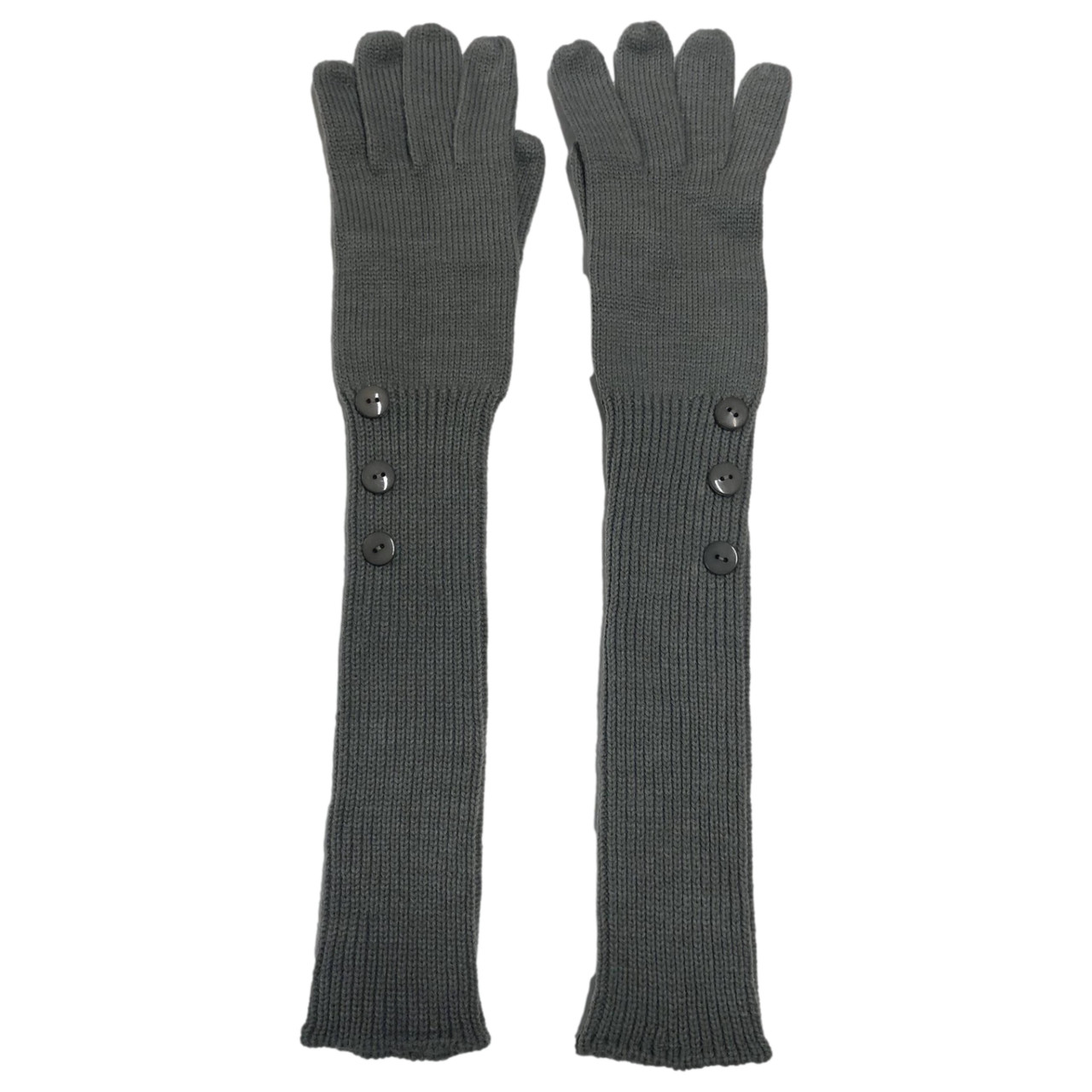 You will love the cozy feel of these pretty extra long gray button front knit gloves. They are warm enough for winter but sleek enough for driving.