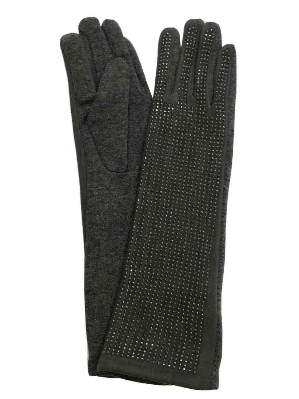 - Womens Long Gray Rhinestone Stretch Fit Evening Gloves 14.5 Inch