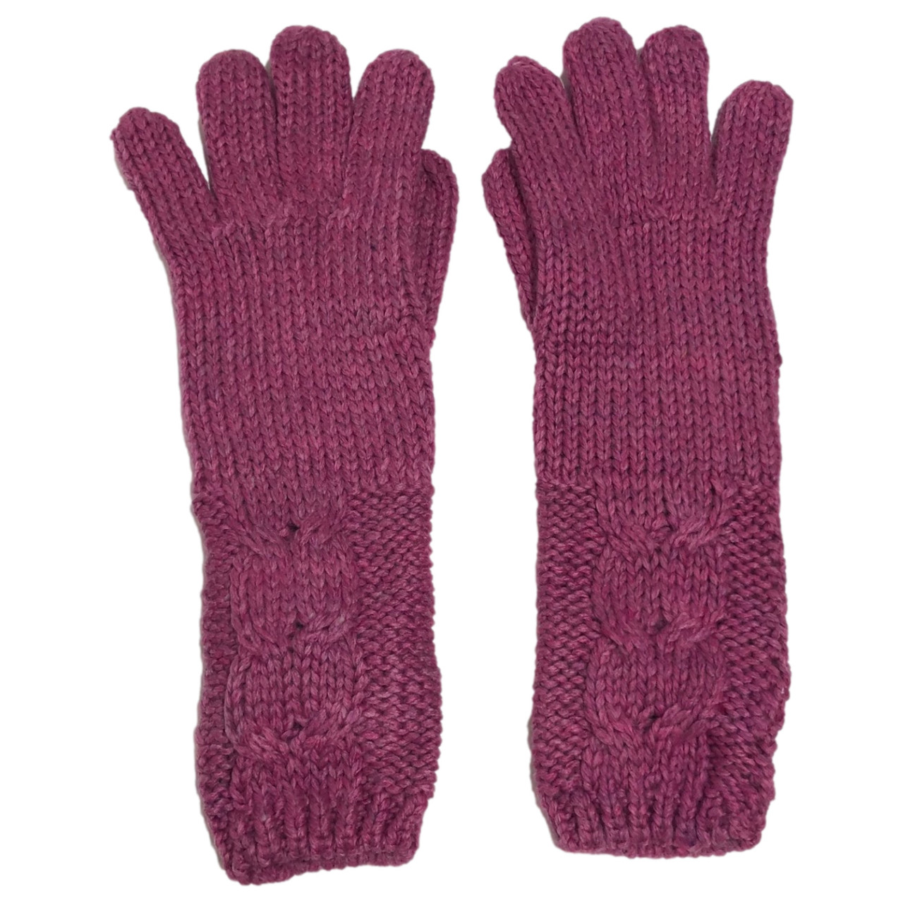 - Womens Long Soft Plush Mauve Rose Pink Cable Knit Winter Gloves