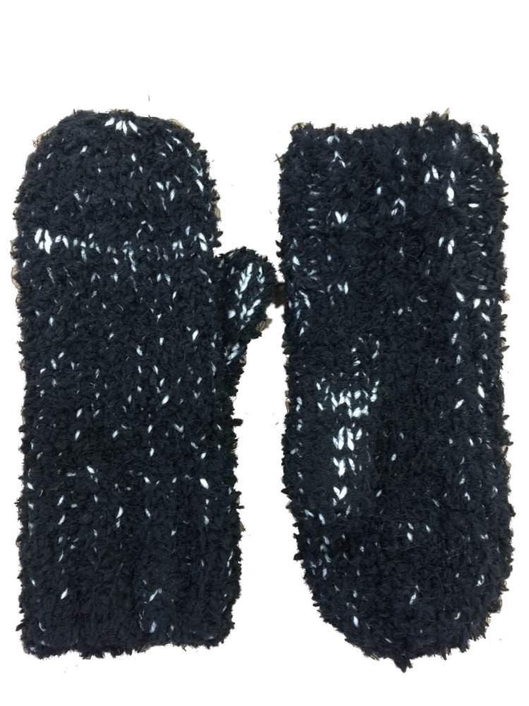 - Womens Minky Soft Knit Mittens Black Speckle