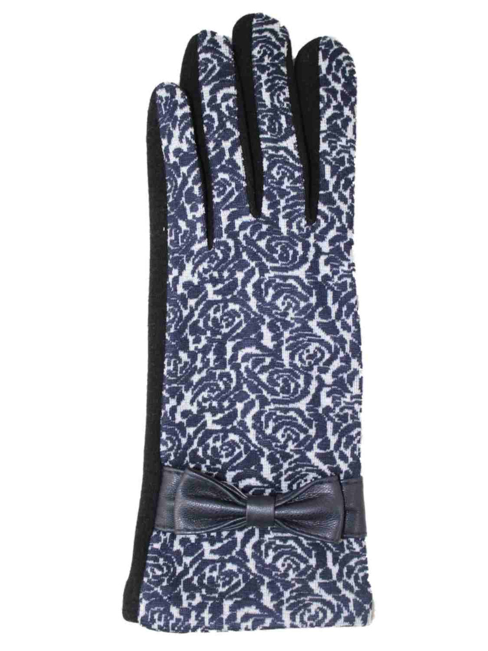 Womens Navy Blue Rose Floral Print Stretch Fit Texting & Tech Touchscreen Gloves