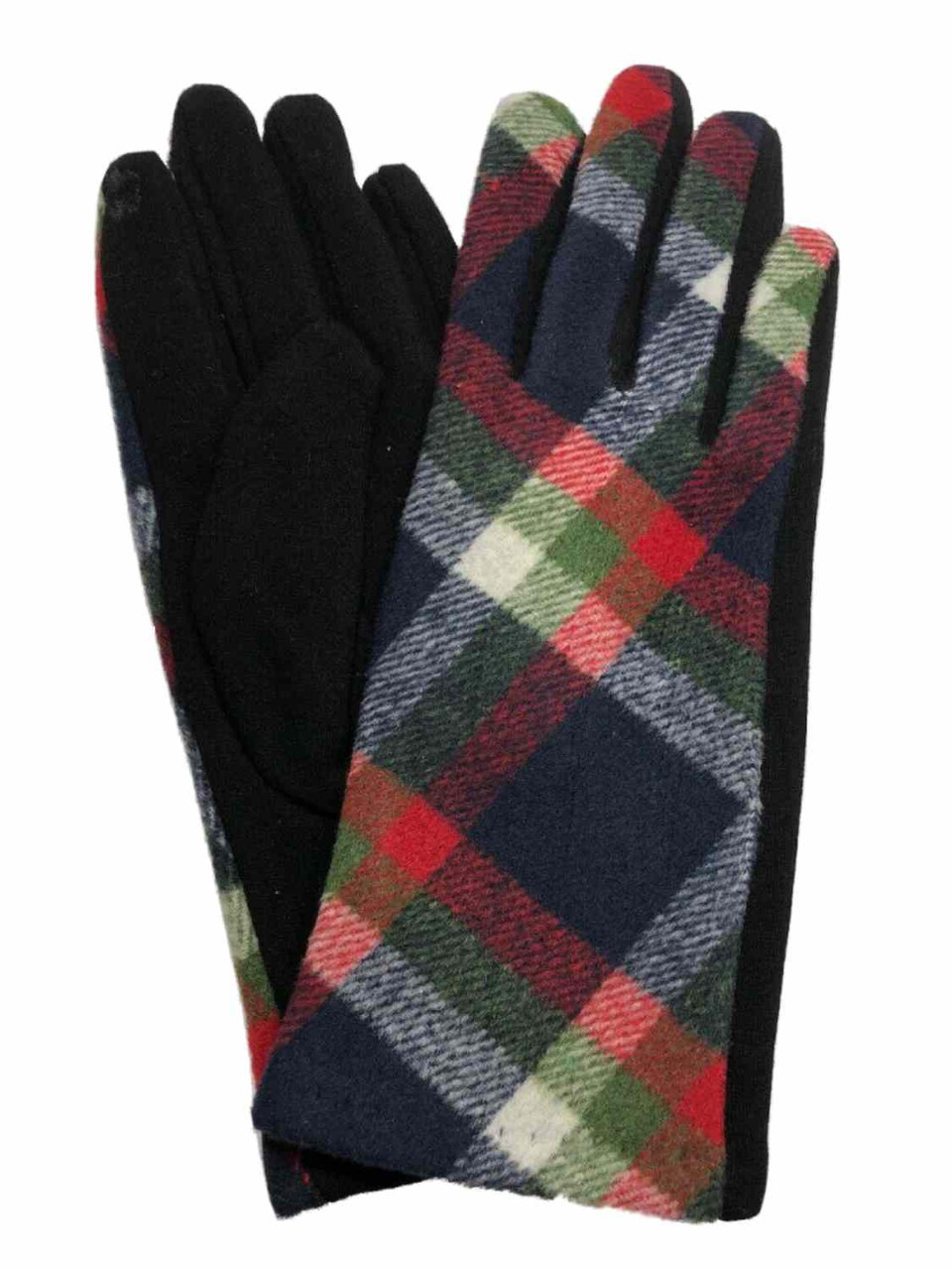 - Womens Navy Green & Red Plaid Stretch Fit Texting & Tech Touchscreen Gloves