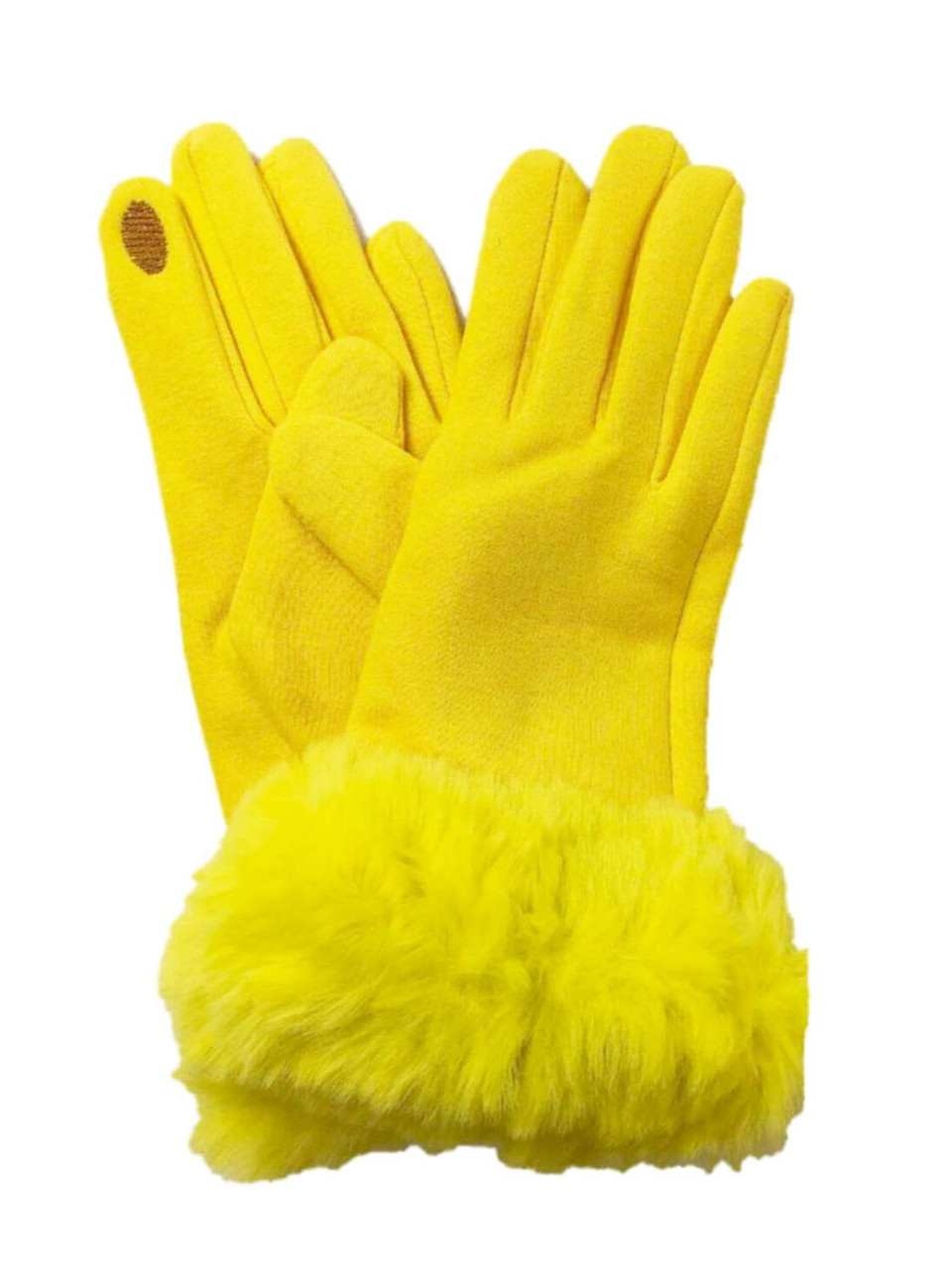 - Womens Neon Yellow Faux Fur Stretch Fit Texting & Tech Touchscreen Gloves