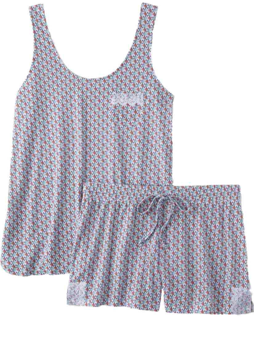 - Womens Orange Aqua Diamond Print Cami Lightweight Tank Top Sleep Set Large